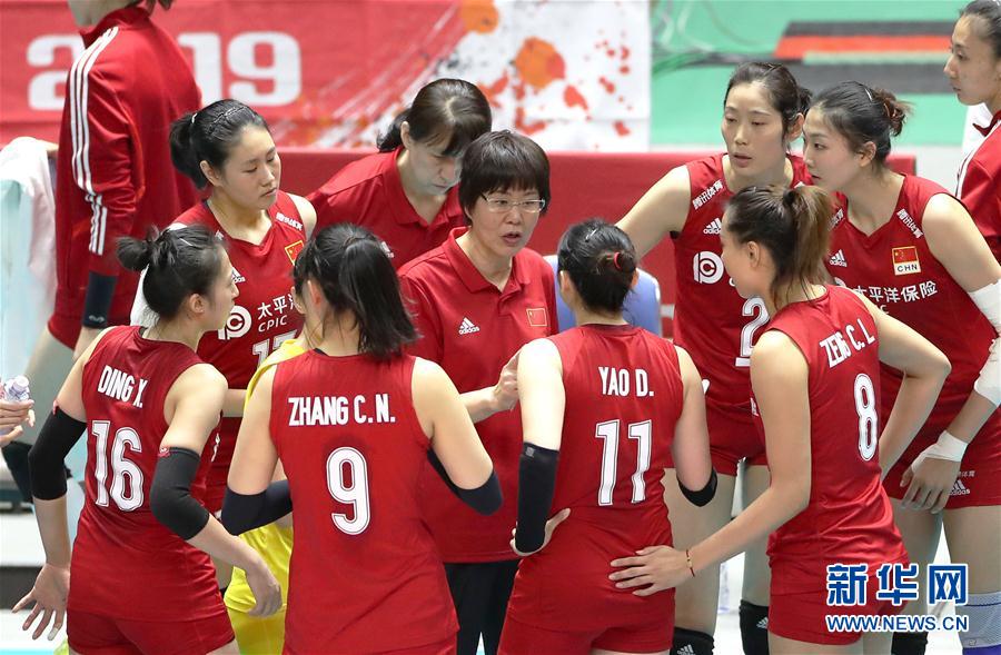 9月22日,中國隊(duì)主教練郎平(中)在比賽間隙指導(dǎo)球員。當(dāng)日,在日本札幌舉行的2019年女排世界杯賽第二階段A組循環(huán)賽比賽中,中國隊(duì)以3比2戰(zhàn)勝巴西隊(duì)。新華社記者杜瀟逸攝
