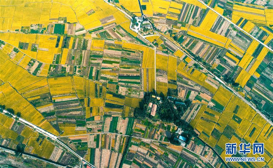 這是9月30日無(wú)人機(jī)拍攝的河北省涉縣白芟村的稻田。 近日,位于太行山下的河北省涉縣白芟村上千畝水稻逐漸成熟。從空中俯瞰,猶如一塊塊“調(diào)色盤”,美不勝收。 新華社記者 王曉 攝
