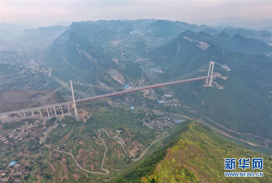 9月30日無人機拍攝的赤水河紅軍大橋。 新華社記者劉坤攝