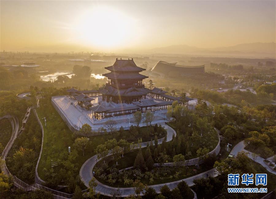 北京世園會園區(qū)內(nèi)的永寧閣(10月7日無人機(jī)拍攝)。新華社記者才揚(yáng)攝