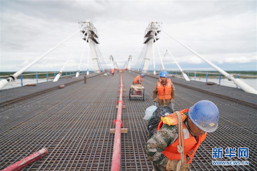 目前,中俄合建的首座跨境公路大橋——黑河到布拉戈維申斯克黑龍江(阿穆爾河)大橋進(jìn)入橋面鋪裝施工作業(yè)階段。大橋于今年5月31日順利合龍,目前中方每天有約200名工人進(jìn)行混凝土澆鑄橋面作業(yè),預(yù)計(jì)橋面施工將持續(xù)到9月上旬。大橋全長1284米,建成后將形成一條新的國際公路通道,實(shí)現(xiàn)中俄地方城市之間互聯(lián)互通。