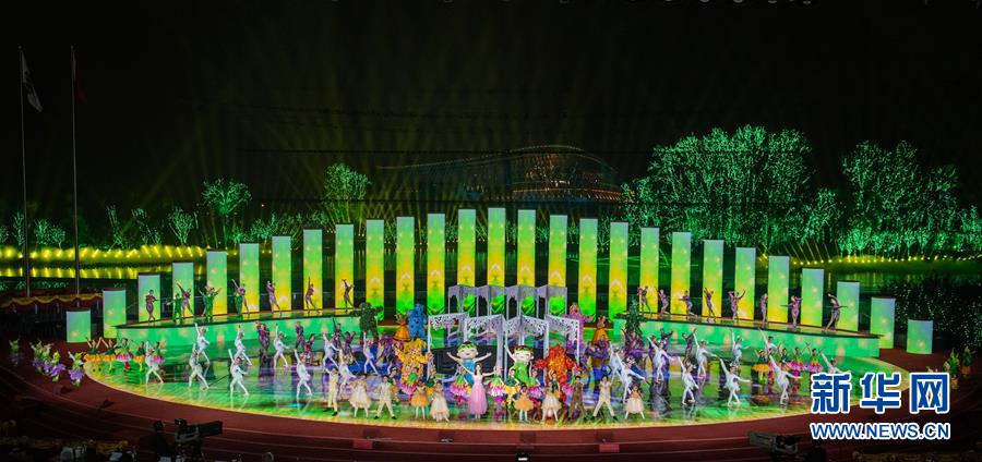 10月9日,演員在節(jié)目“綠野漫游”中表演。當(dāng)日,2019年中國北京世界園藝博覽會閉幕式在北京舉行。新華社記者翟健嵐攝