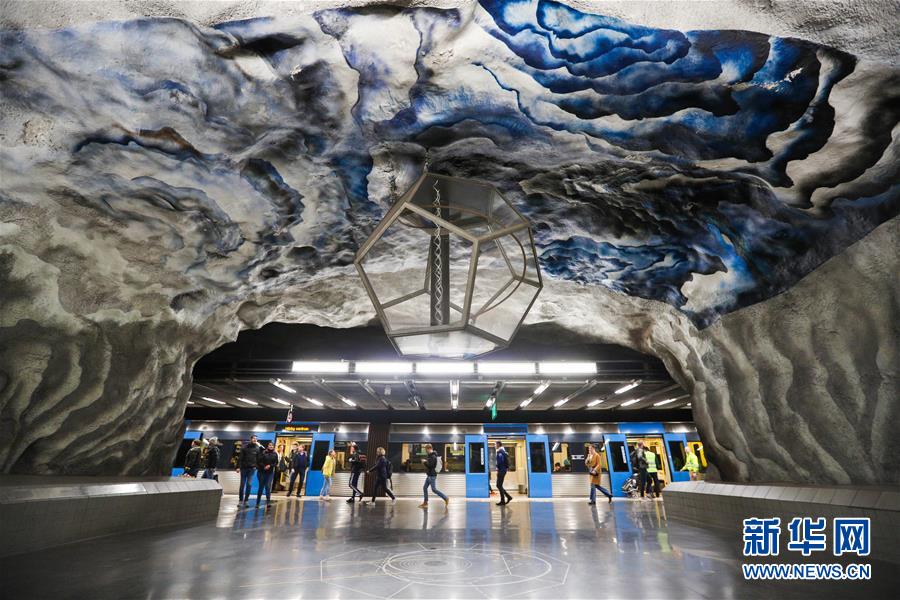 10月8日,在瑞典斯德哥爾摩,乘客在一處地鐵站內(nèi)行走。在瑞典首都斯德哥爾摩,每座地鐵站的站臺、墻壁及大廳的風(fēng)格設(shè)計都無一相同,各有特色。藝術(shù)家們運(yùn)用了各類藝術(shù)元素裝點(diǎn)地鐵站,色彩繽紛的視覺效果既突出了每個站臺的個性,也豐富了乘客的旅途體驗。走進(jìn)斯德哥爾摩地鐵,仿佛置身于一座“地下藝術(shù)長廊”。新華社記者鄭煥松攝