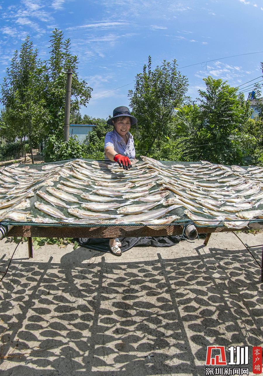 岸上,家家戶(hù)戶(hù)都在忙著晾曬剛捕撈上來(lái)的毛刀魚(yú)、小白魚(yú)和武昌魚(yú)。