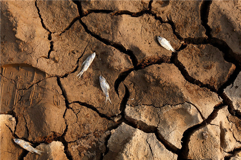 當(dāng)?shù)貢r(shí)間2016年5月13日,柬埔寨甘丹省,受厄爾尼諾現(xiàn)象影響,當(dāng)?shù)卦庥龈珊堤鞖猓靥粮珊蚤_裂。