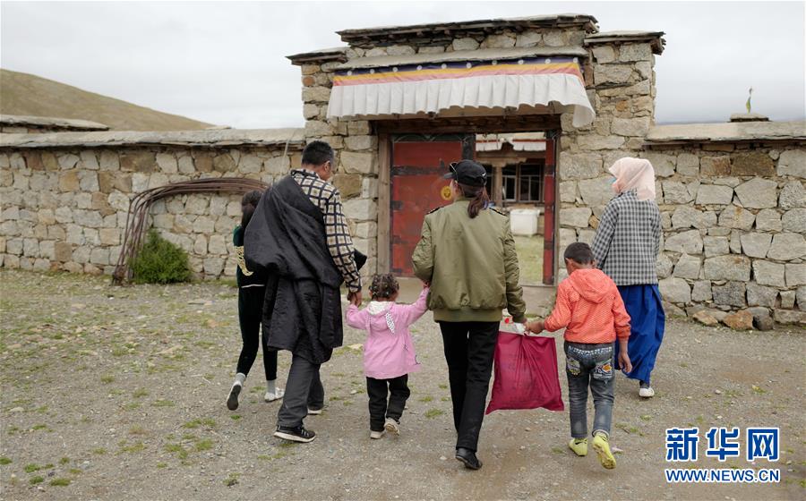 堅熱益西(中)回到牧區(qū)老家看父母(7月13日攝)。新華社記者普布扎西攝