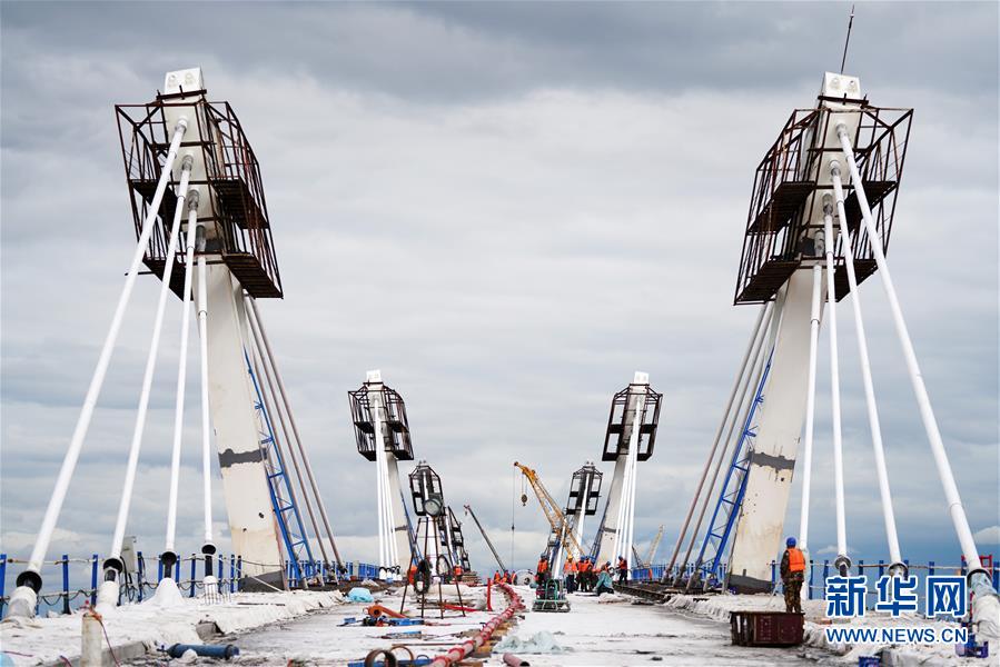 工人在大橋上進行橋面鋪裝施工作業(yè)(8月19日攝)。新華社記者王建威攝