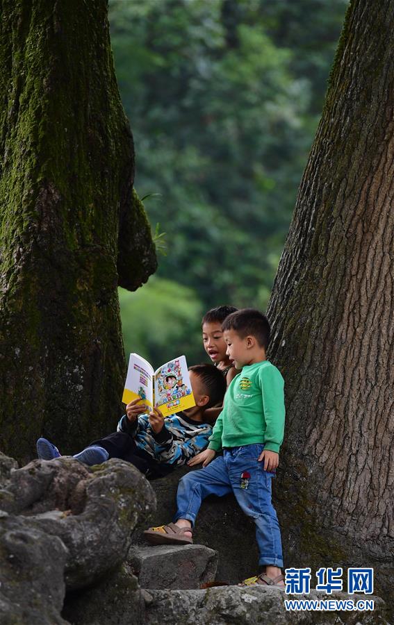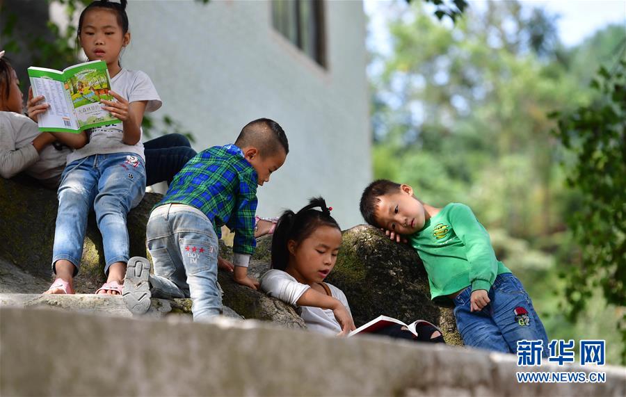 黔桂烏英苗寨的孩子們在閱讀剛剛獲贈的圖書(10月11日攝)。