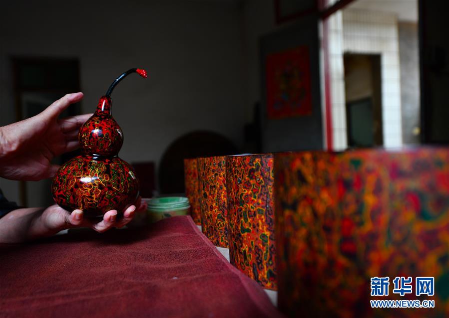 10月12日,丁國坤在家中用涂抹了香油的手指對一件未成形的脫胎漆器進行“拋光”工序。新華社記者胡晨歡攝
