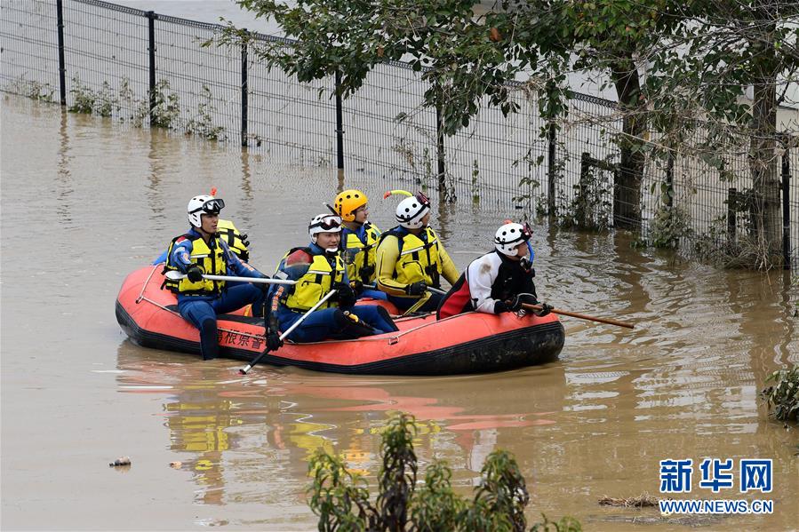 10月14日,在日本長野市,當(dāng)?shù)鼐仍藛T展開搜救工作。受縱貫東日本強臺風(fēng)“海貝思”帶來的強降雨影響,日本多地暴發(fā)洪災(zāi),已造成33人死亡、19人失蹤。據(jù)日本共同社13日統(tǒng)計,“海貝思”過境導(dǎo)致日本多處河流泛濫,目前有21條河流決堤24處。其中,流經(jīng)長野縣的千曲川決堤,造成長野市和千曲市大范圍被淹,大片住宅區(qū)被洪水包圍,有的房屋甚至被淹至2層。新華社記者華義攝