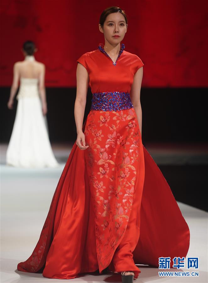 10月16日,模特在展示婚慶禮服。 當日,“愿·緣·圓”上久楷婚慶主題秀在江蘇省蘇州市吳江區(qū)盛澤鎮(zhèn)舉行。 新華社記者 季春鵬 攝
