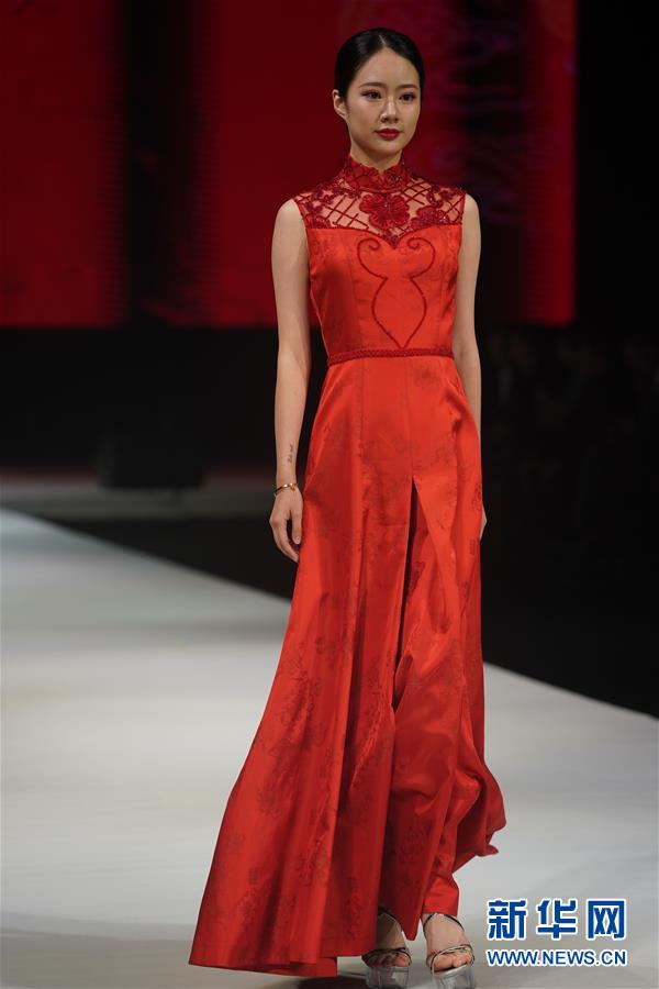 10月16日,模特在展示婚慶禮服。 當日,“愿·緣·圓”上久楷婚慶主題秀在江蘇省蘇州市吳江區(qū)盛澤鎮(zhèn)舉行。 新華社記者 季春鵬 攝