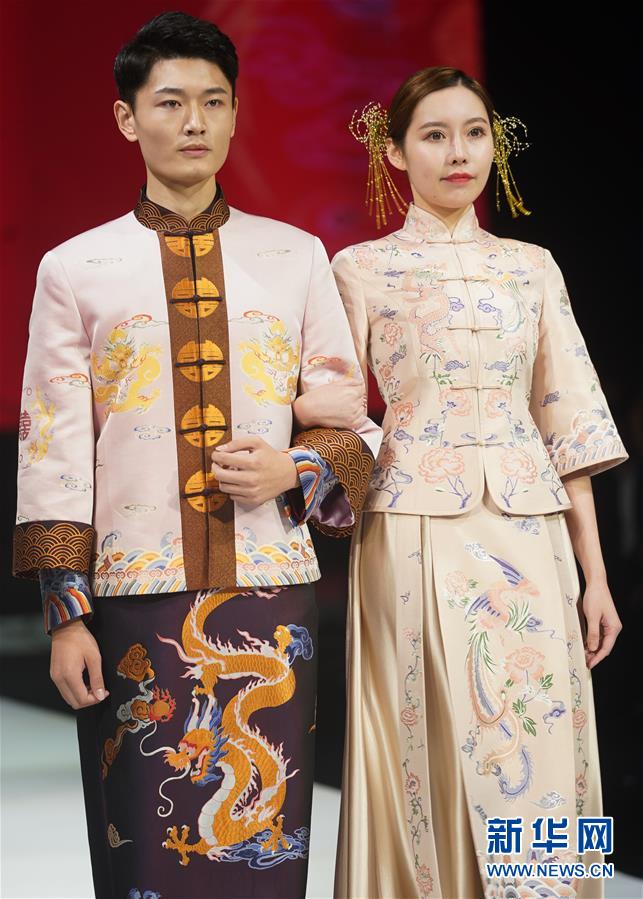 10月16日,模特在展示婚慶禮服。 當(dāng)日,“愿·緣·圓”上久楷婚慶主題秀在江蘇省蘇州市吳江區(qū)盛澤鎮(zhèn)舉行。新華社記者 季春鵬 攝