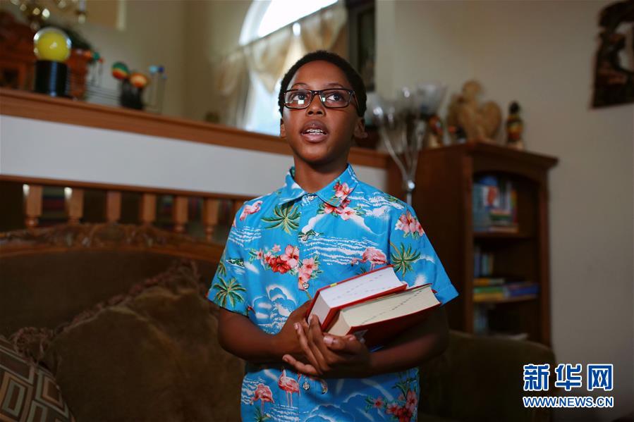 9月25日,在美國(guó)芝加哥,卡亞·恩朱比展示漢語(yǔ)課本。 新華社記者 汪平 攝