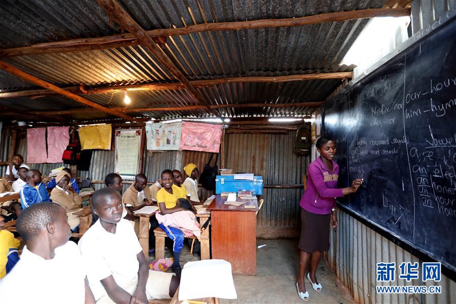 10月16日,在肯尼亞內(nèi)羅畢基貝拉貧民窟,學(xué)生在社區(qū)學(xué)校上課。新華社記者王騰攝