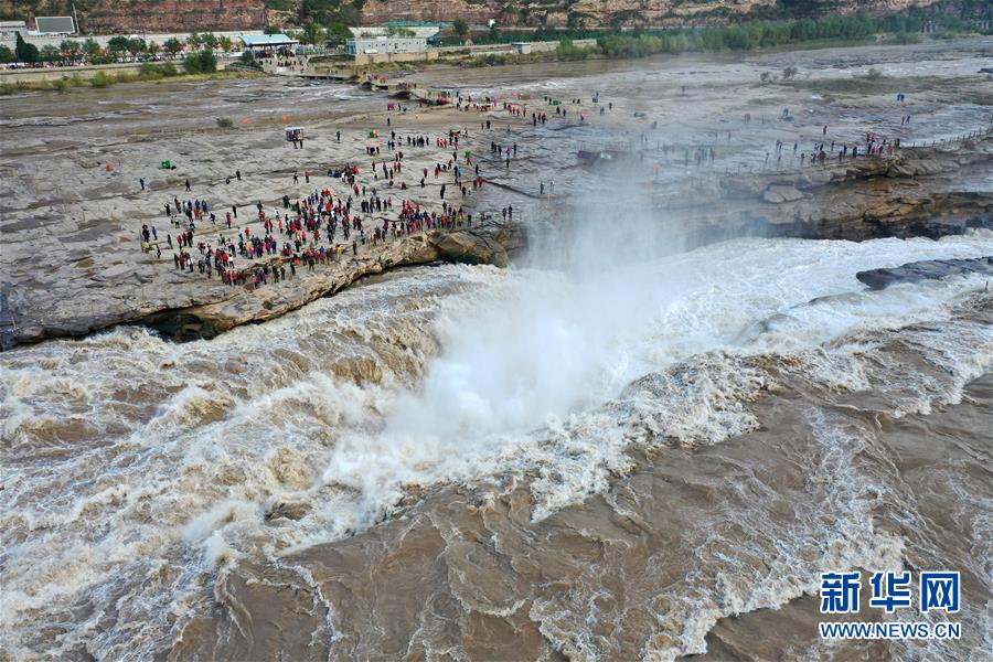 壺口瀑布水量增大 引眾多游客觀賞