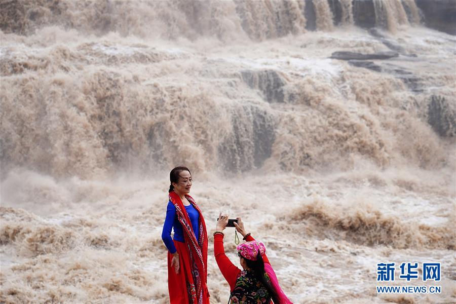 10月17日,游客在位于山西吉縣的壺口瀑布前拍照。