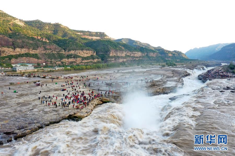 壺口瀑布水量增大 引眾多游客觀賞