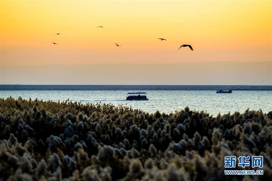這是10月17日拍攝的日出時分的居延海風(fēng)光。新華社記者 彭源 攝