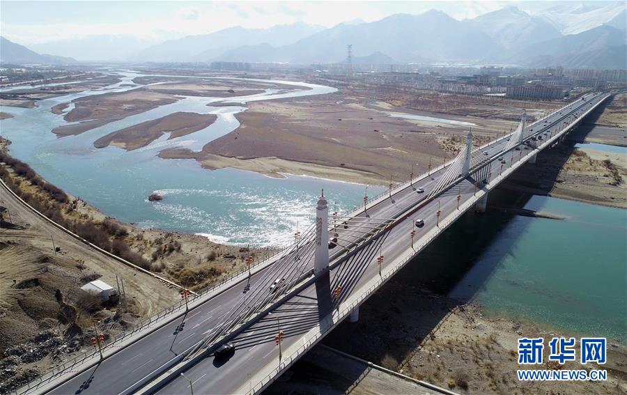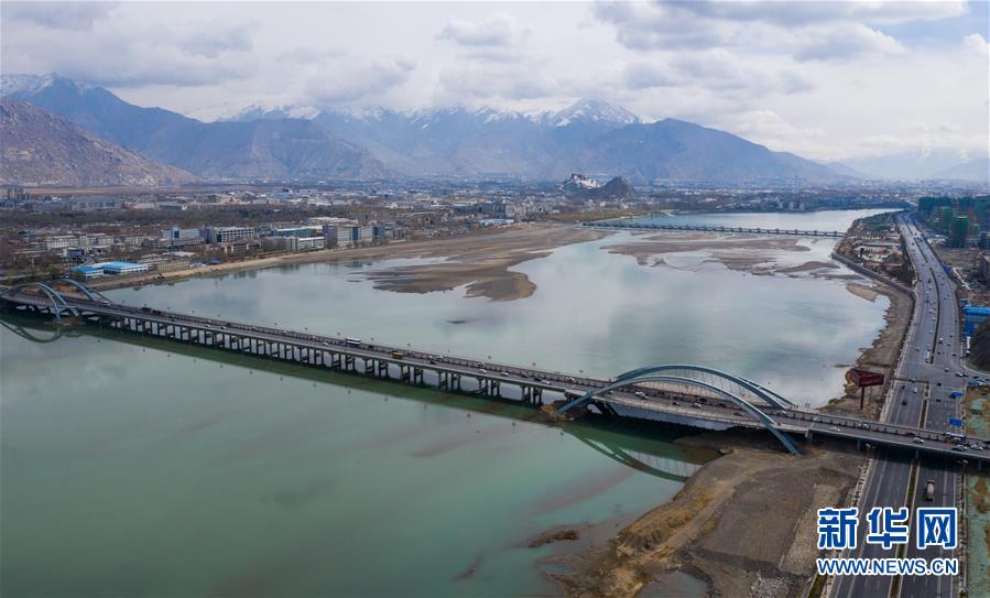 這是橫跨在拉薩河上的拉薩市區(qū)公路(4月3日無人機(jī)拍攝)。 新華社記者 晉美多吉 攝