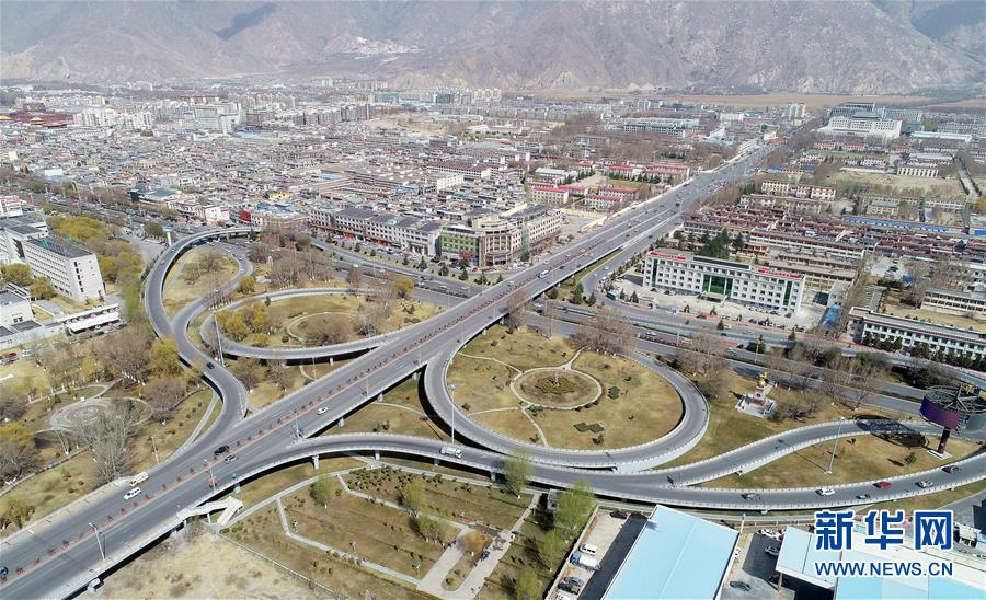 這是拉薩市內(nèi)公路(4月3日無人機(jī)拍攝)。 新華社記者 普布扎西 攝