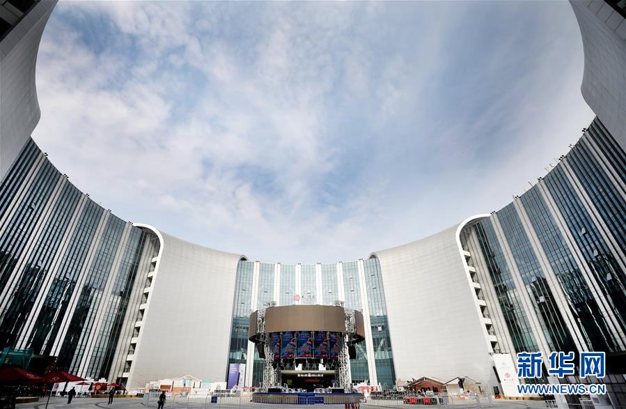 這是10月25日拍攝的位于國(guó)展中心中央廣場(chǎng)的進(jìn)博會(huì)中央舞臺(tái)(中下)。 新華社記者 方喆攝