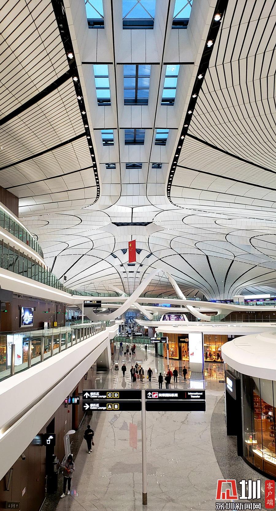 北京大興機場橫跨兩市,距離天安門46公里,首都機場67公里,北京城市副中心54公里。見圳客戶端、深圳新聞網(wǎng)記者劉東博攝
