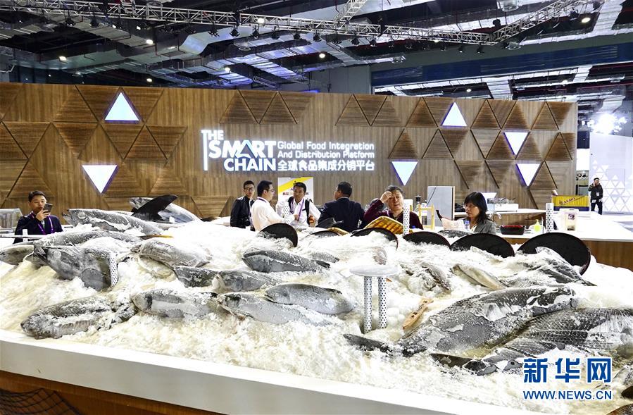 11月5日,參觀者在食品及農(nóng)產(chǎn)品展區(qū)全球食品集成分銷平臺參觀。新華社記者才揚攝