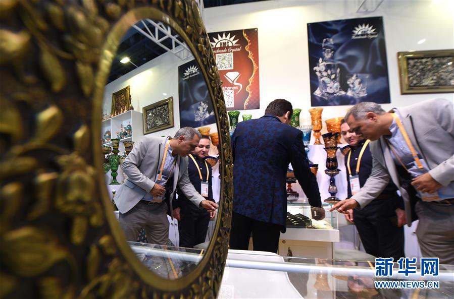 11月5日,伊朗參展商在第二屆進(jìn)博會(huì)服務(wù)貿(mào)易展區(qū)的展臺(tái)前忙碌。新華社記者尹炣攝