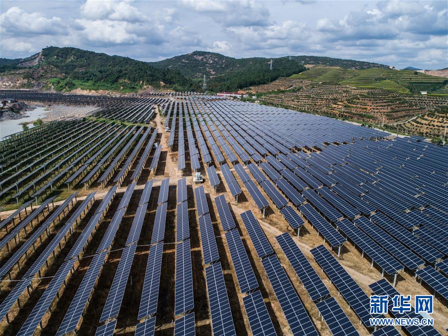 空中俯瞰湖州市埭溪鎮(zhèn)東紅村的光伏發(fā)電站(9月26日無(wú)人機(jī)拍攝)。新華社記者徐昱攝
