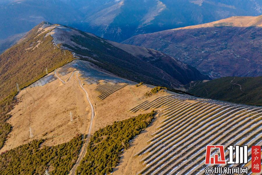 位于海拔3900米的四川省阿壩州小金縣大壩口村,場面壯觀的光伏發(fā)電廠占據(jù)了整個(gè)山脈。
