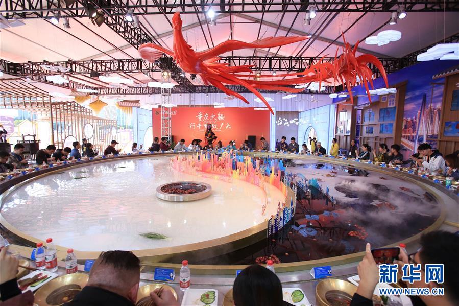 參觀者在第二屆進(jìn)博會(huì)上體驗(yàn)“天下第一大火鍋”試吃活動(dòng)(11月8日攝)。新華社記者隋先凱攝