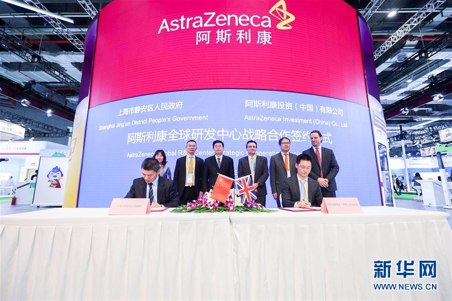 阿斯利康在第二屆進(jìn)博會上與上海市政府簽訂戰(zhàn)略合作協(xié)議(11月6日攝)。新華社記者張玉薇攝
