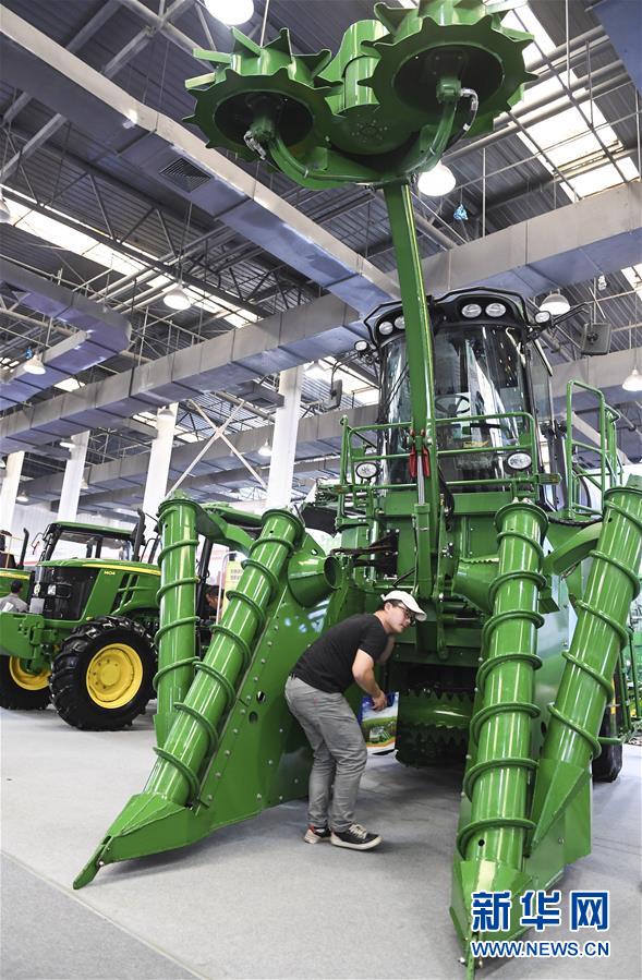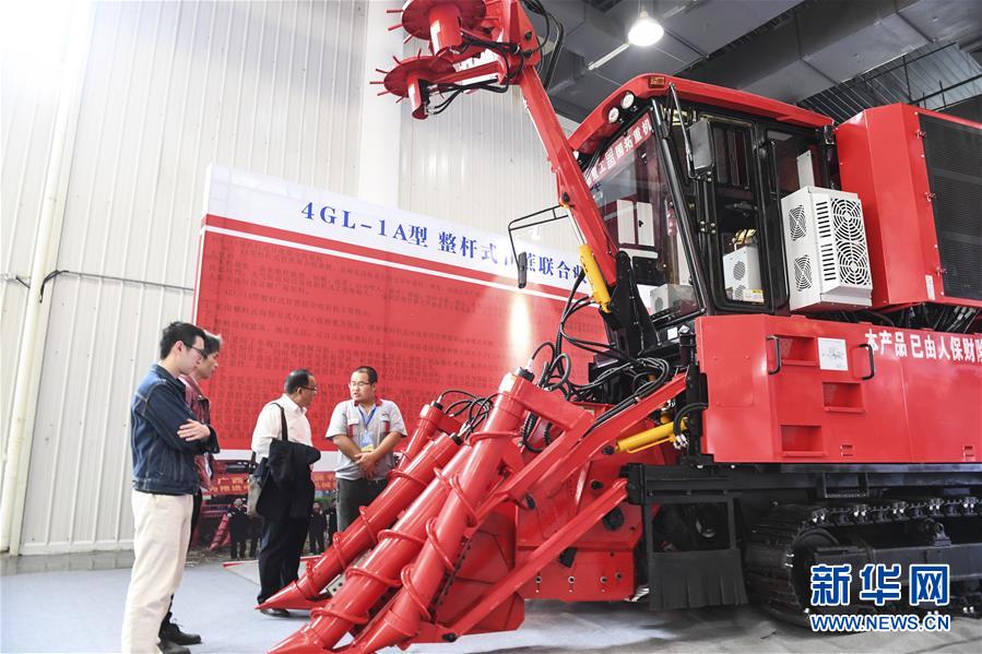 11月16日,參觀者在展會(huì)現(xiàn)場(chǎng)參觀甘蔗收割機(jī)械設(shè)備。新華社記者曹祎銘攝