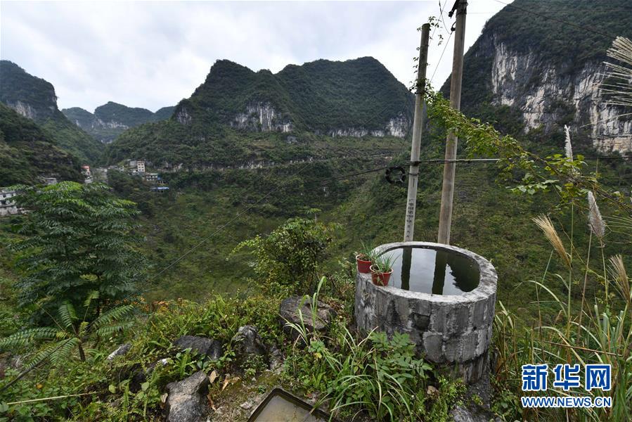 在廣西大化瑤族自治縣七百弄鄉(xiāng)古竹村,村民在懸崖邊修建的微型水柜(11月13日攝)。新華社記者黃孝邦攝