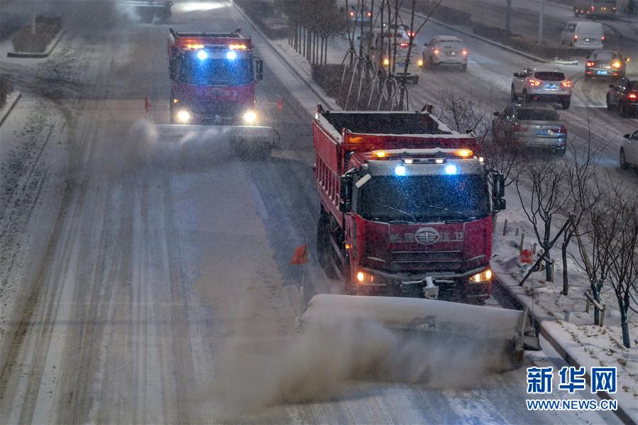 11月17日,一輛環(huán)衛(wèi)清雪車在作業(yè)。  新華社記者 顏麟蘊(yùn) 攝