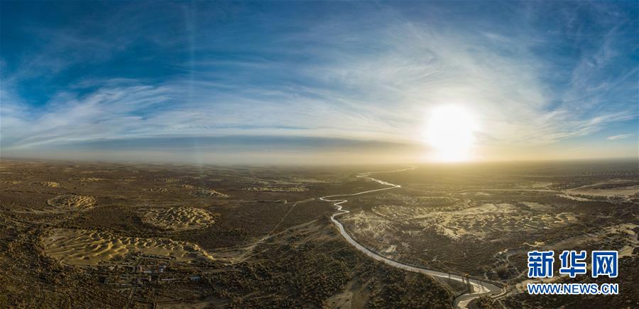 這是克里雅河及沿岸的胡楊林(11月13日無(wú)人機(jī)全景拍攝)。 新華社記者 沈伯韓 攝