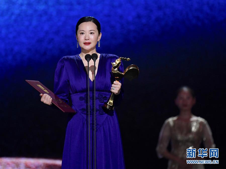 11月23日,電影《地久天長》主演詠梅獲得最佳女主角獎(jiǎng)。當(dāng)日,第32屆中國電影金雞獎(jiǎng)?lì)C獎(jiǎng)典禮在福建廈門舉行。新華社記者姜克紅攝