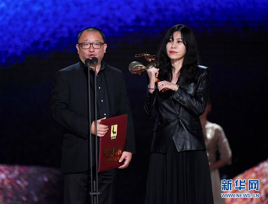 11月23日,電影《地久天長》獲得最佳編劇獎(jiǎng),導(dǎo)演兼編劇王小帥(左)、編劇阿美在頒獎(jiǎng)儀式上。當(dāng)日,第32屆中國電影金雞獎(jiǎng)?lì)C獎(jiǎng)典禮在福建廈門舉行。新華社記者姜克紅攝