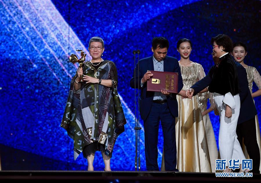 11月23日,電影《送我上青云》演員吳玉芳獲得最佳女配角獎(jiǎng)。當(dāng)日,第32屆中國電影金雞獎(jiǎng)?lì)C獎(jiǎng)典禮在福建廈門舉行。新華社記者姜克紅攝
