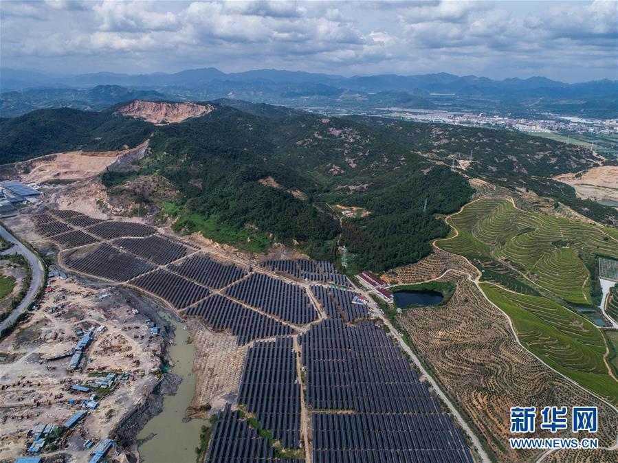 空中俯瞰湖州市埭溪鎮(zhèn)東紅村的光伏發(fā)電站(9月26日無人機(jī)拍攝)。新華社記者徐昱攝