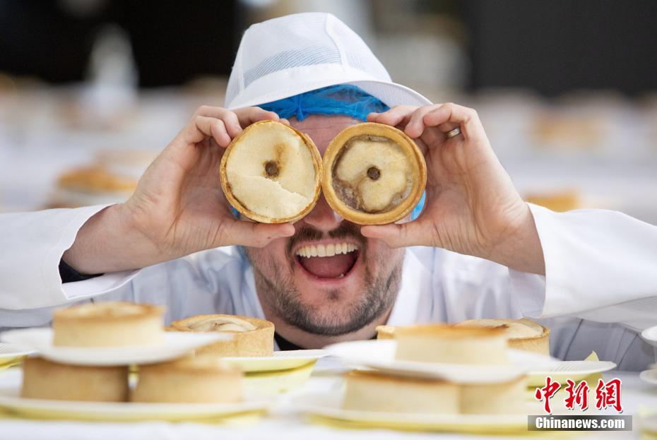 當(dāng)?shù)貢r(shí)間2019年11月20日,英國(guó)蘇格蘭丹弗姆林(Dunfermine),第21屆世界蘇格蘭派錦標(biāo)賽在當(dāng)?shù)嘏e行。據(jù)悉,參賽作品被分為包括足球餡餅、咸味小吃和通心粉派等11個(gè)種類。圖片來(lái)源:視覺中國(guó)