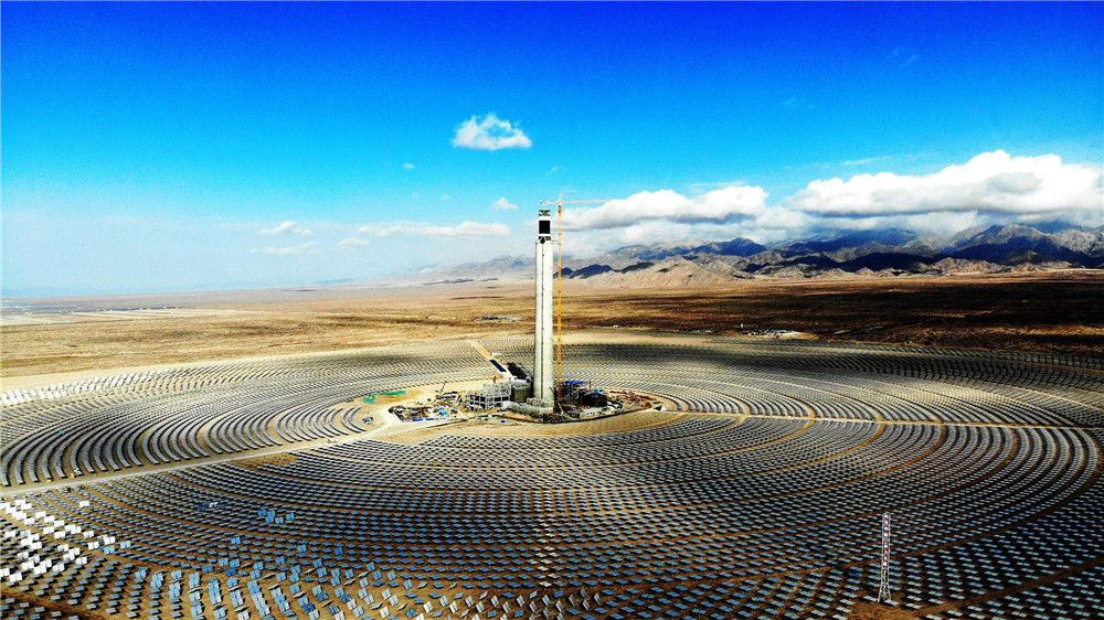 2018年10月13日,地處青海省海西州德令哈市的中控太陽(yáng)能發(fā)電有限公司10兆瓦塔式熔鹽光熱電站。位于中國(guó)西部的青海省,有“三江源”“中華水塔”之稱。如今,青海清潔能源正在從“風(fēng)生水起”走向“風(fēng)光無(wú)限”。青海太陽(yáng)能資源約占中國(guó)的11%,光熱資源平均年輻射總量可達(dá)每平方米5860—7400兆焦耳,僅次于西藏;同時(shí),該省可用于新能源開(kāi)發(fā)的荒漠土地面積約10萬(wàn)平方公里,裝機(jī)規(guī)??蛇_(dá)35億千瓦,折合年發(fā)電量約5.6萬(wàn)億千瓦時(shí),是三峽電站年發(fā)電量的56倍。