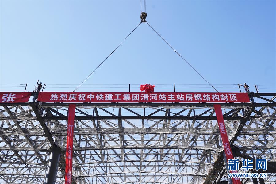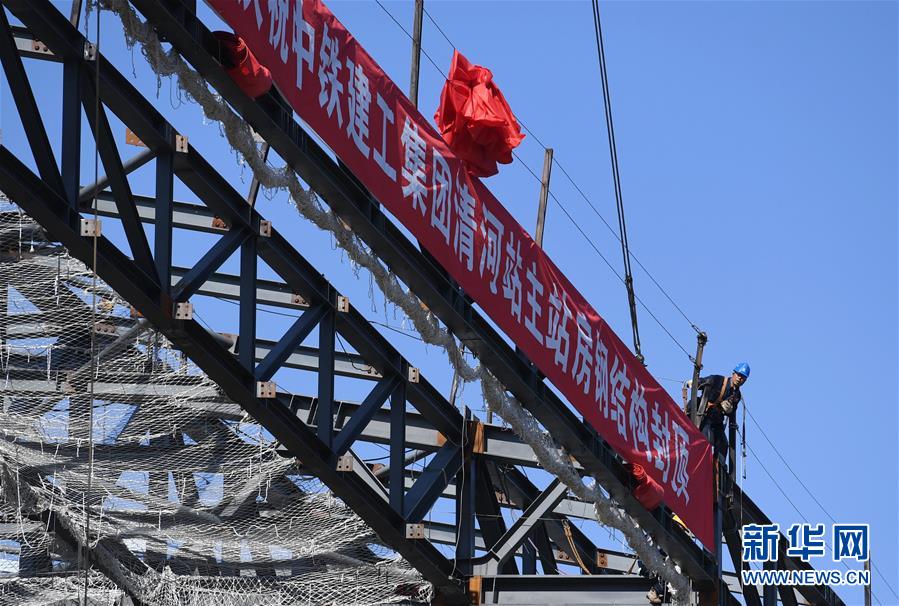 5月29日,工人在京張高鐵下花園北站施工。新華社記者邢廣利攝