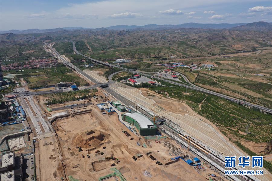 5月28日無人機(jī)拍攝的建設(shè)中的京張高鐵懷來站。新華社記者邢廣利攝