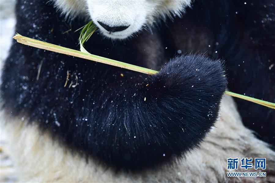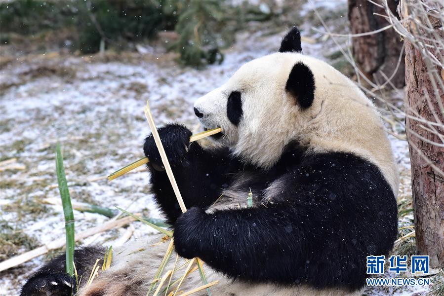 11月29日,在西寧熊貓館內(nèi),兩只大熊貓在吃竹子。 當(dāng)日,青海省西寧市迎來降雪,西寧熊貓館四只“萌寵”大熊貓在雪天里享受著吃竹子的樂趣。據(jù)了解,大熊貓生活的適宜溫度在26攝氏度至零下5攝氏度之間,冬季氣溫低于零下5攝氏度時,場館會啟用保暖設(shè)施。 新華社記者 吳剛 攝