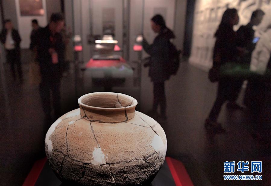 10月19日,參觀(guān)者在二里頭夏都遺址博物館內(nèi)觀(guān)看展出的陶器。新華社記者李安攝