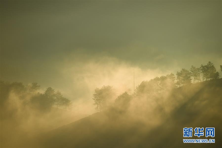 福建省武夷山的茶山云霧繚繞,在朝陽(yáng)照射下如夢(mèng)如幻(11月17日攝)。新華社記者宋為偉攝