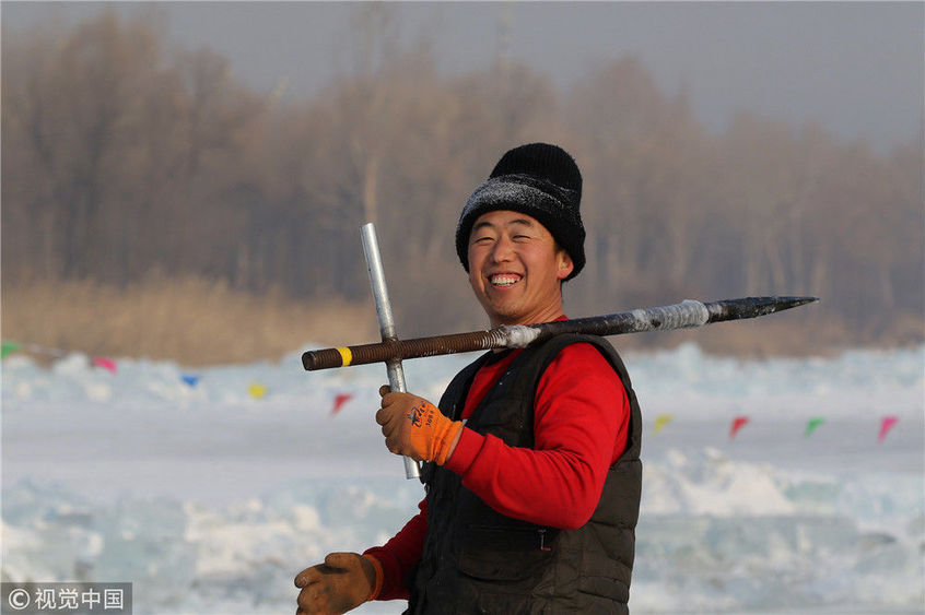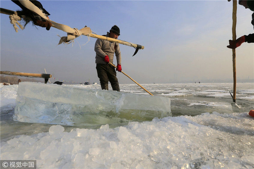 實拍松花江上的纖夫采冰者工作20天收入近萬元