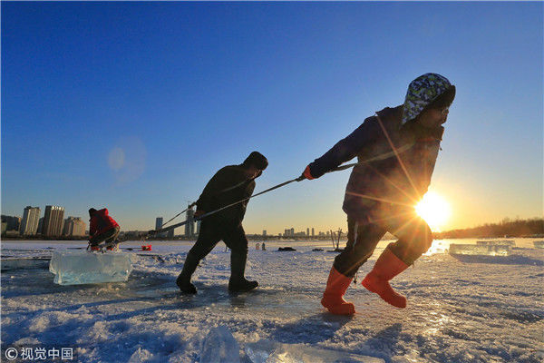 寒冬采冰人:起早貪黑 “淘金”冰雪